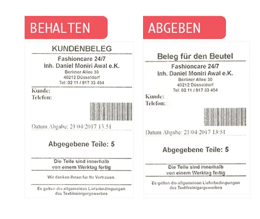 An unserem 24/7-Abgabe- und Abholterminal können Sie Ihre Textilien rund um die Uhr, 365 Tage im Jahr, bequem in unserer Reinigung abgeben und abholen. Die Registrierung erfolgt vorab bei Ihrem ersten Besuch  in unserem Geschäft auf der Berliner Allee 30.